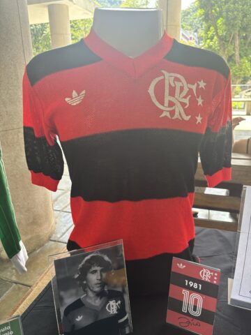 Para ele, a camisa mais especial é o uniforme branco usado em jogo por Zico – o maior ídolo do Flamengo – em 1981, ano em que o time conquistou Libertadores e Mundial de Clubes. Esse é o mesmo modelo que ele ganhou de presente do pai quando era criança. “Eu fiquei maluco assim que consegui. Quando eu olho para ela, me lembro do Maracanã, do Zico subindo para o gramado, saindo do vestiário, aquele Flamengo, aquelas camisas da Adidas. Não tem como esquecer isso”, lembra.